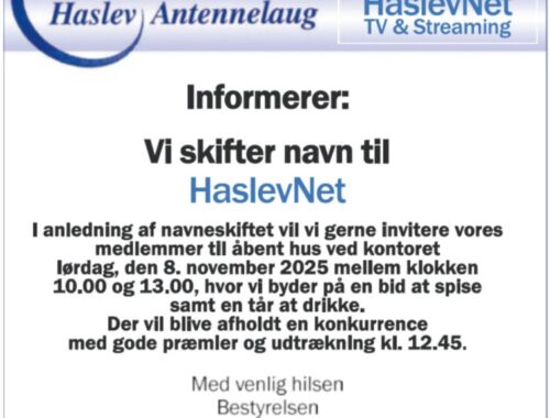 NORLYS holder ferielukket: Onsdag d. 13 august og er derfor IKKE tilstede i butikken. Haslev Antennelaug holder ferielukket: Torsdag d. 31 Juli. Uge 32, 33 og 34Mandag d. 4 august til og med søndag d. 17 august. Undtagen torsdag d.…